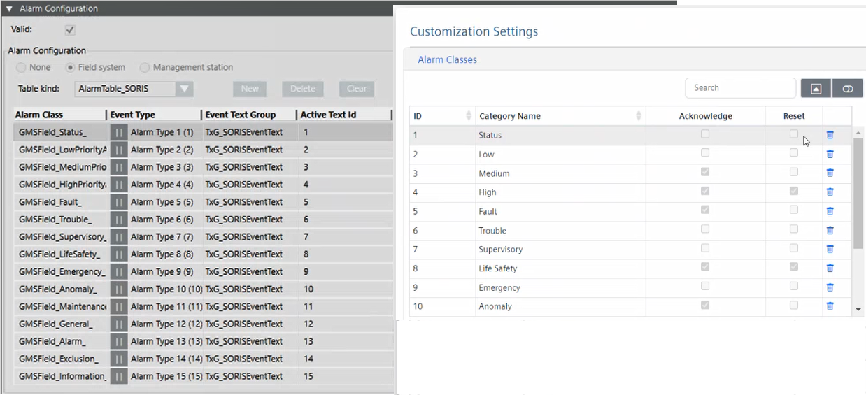 NOTE: The ID value must match the Active Text Id value in the alarm table configuration. In general, the new settings must match exactly the configuration of the customized alarm table in Desigo CC.