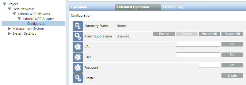 - Select Project > Field Networks > [SORIS network] > [Kabona WDC Adapter] > [Kabona WDC Configuration]