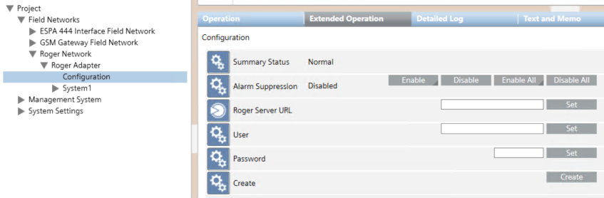 - Select Project > Field Networks > [SORIS network] > [Roger RACS5 Adapter] > [Roger RACS5 Configuration].
