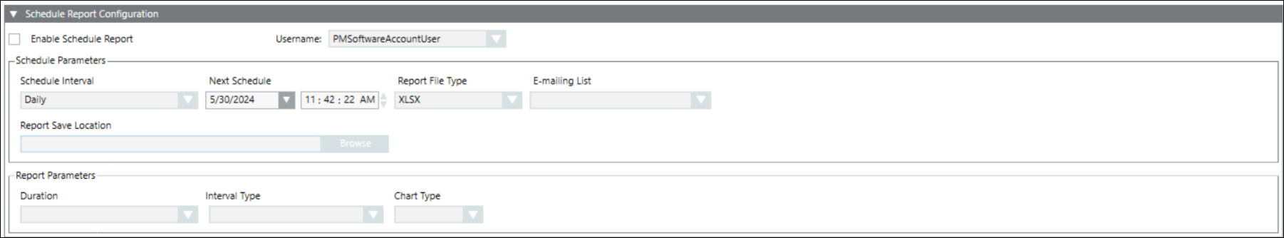 Select the Enable Schedule Report check box to activate the report scheduling configurations.