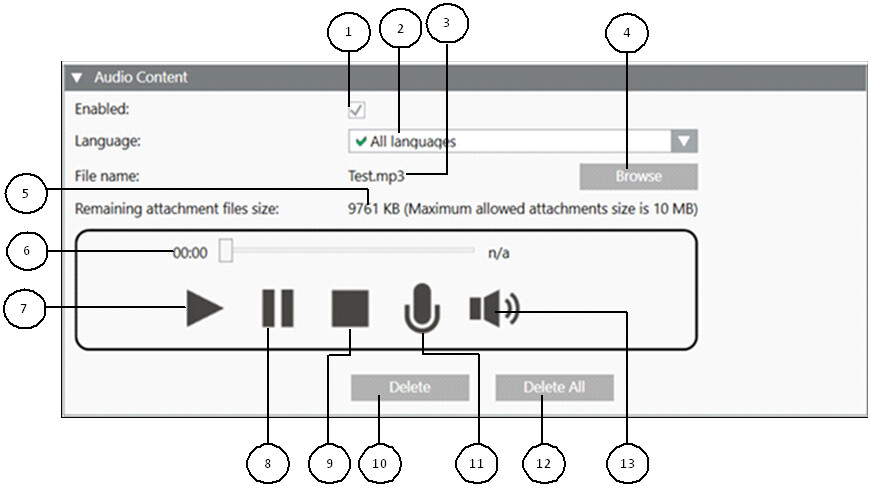 10 | Delete | Delete the uploaded audio file or the recorded audio content. |