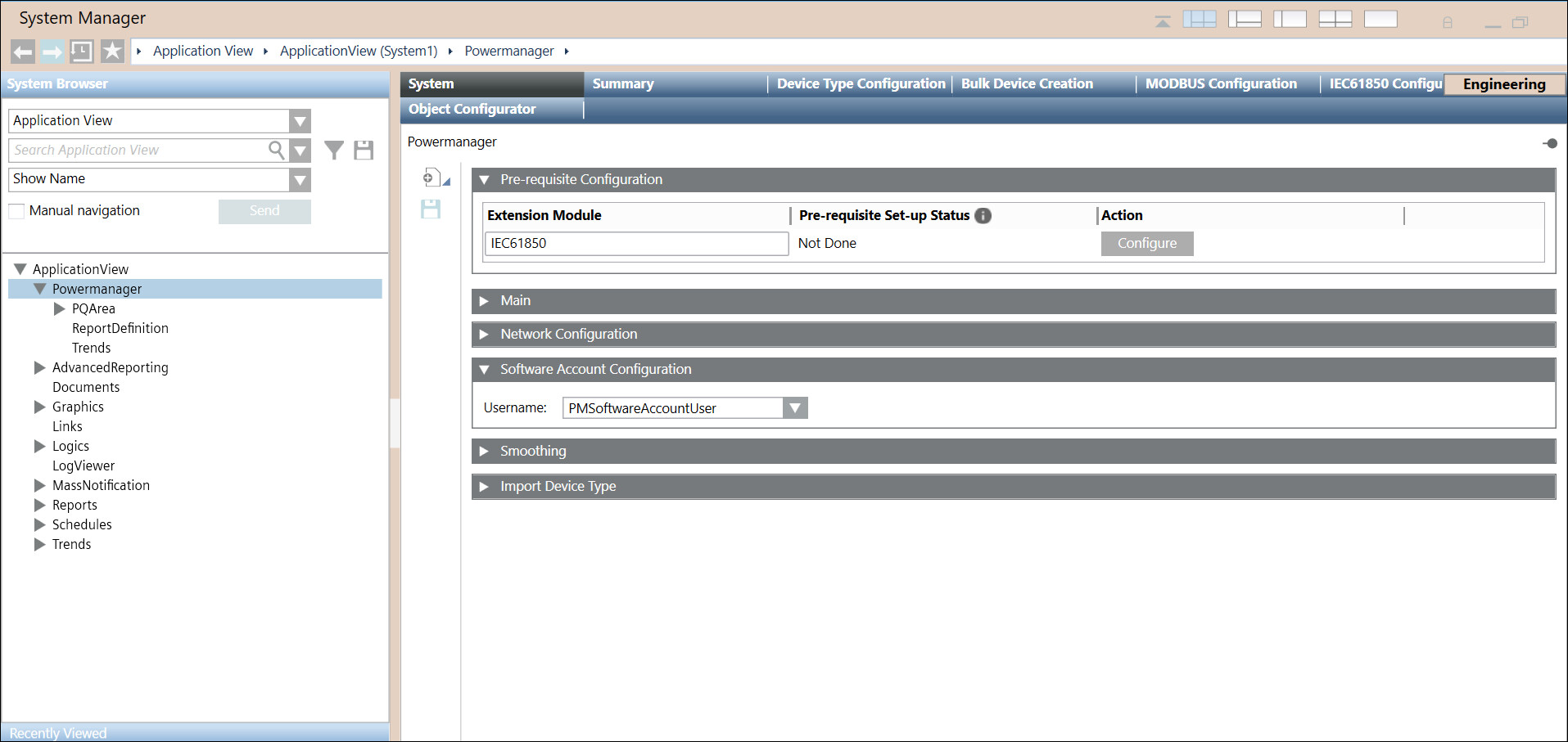 - In System Browser, select ApplicationView > Powermanager.