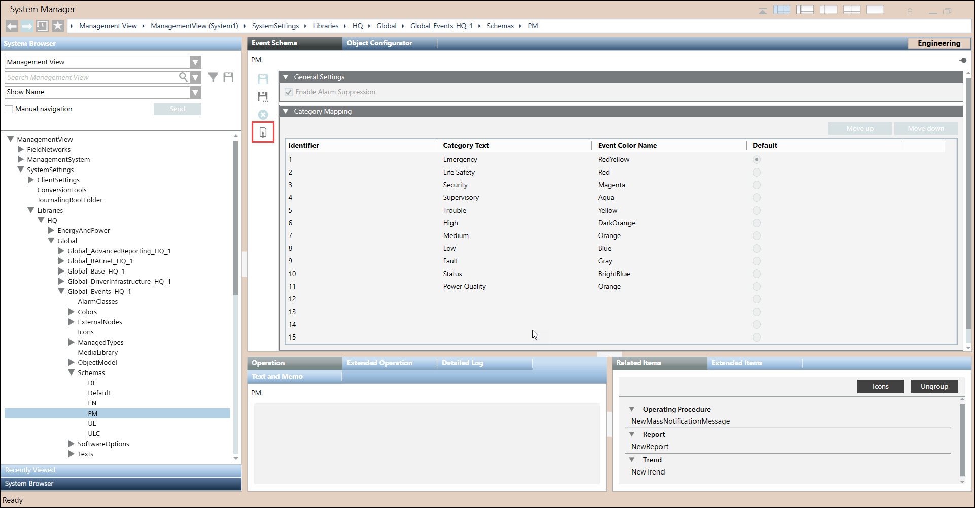 - Navigate to SystemSettings > Libraries > HQ > Global > Global_Events_HQ_1 > Schemas > PM.
