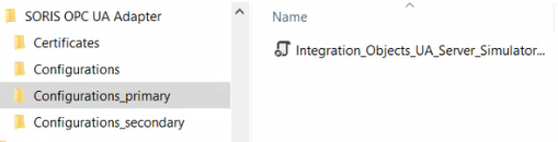 - In C:\Program Files (x86)\Siemens\SORIS OPC UA Adapter multiple Configurations_[adapter service name] folders are created, each one including any other files that allow connecting to the specific OPC UA server.